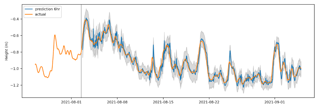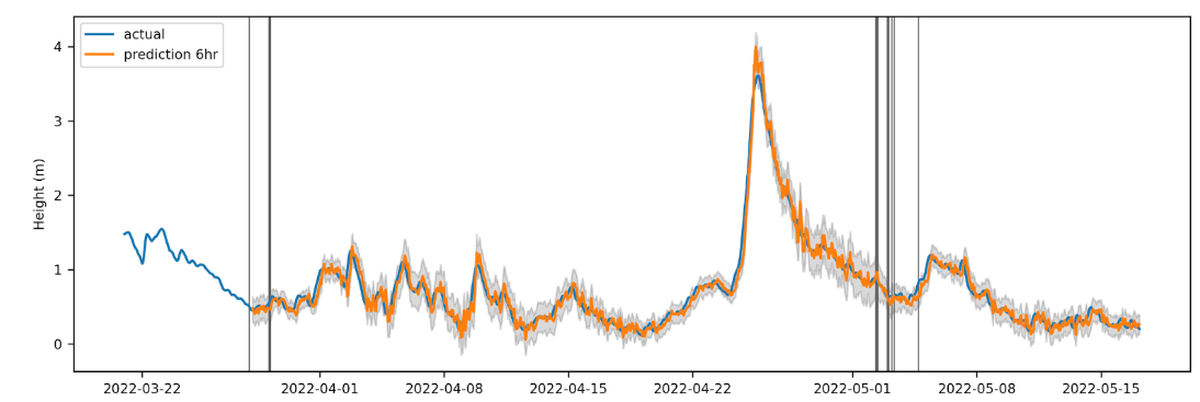 We went on to further fine-tune the ARIMA model. We tweaked the code of its predictive model, achieving accurate predictions within a 10cm range on average, up to 6 hours in advance, and scoring an error margin of less than 10%.