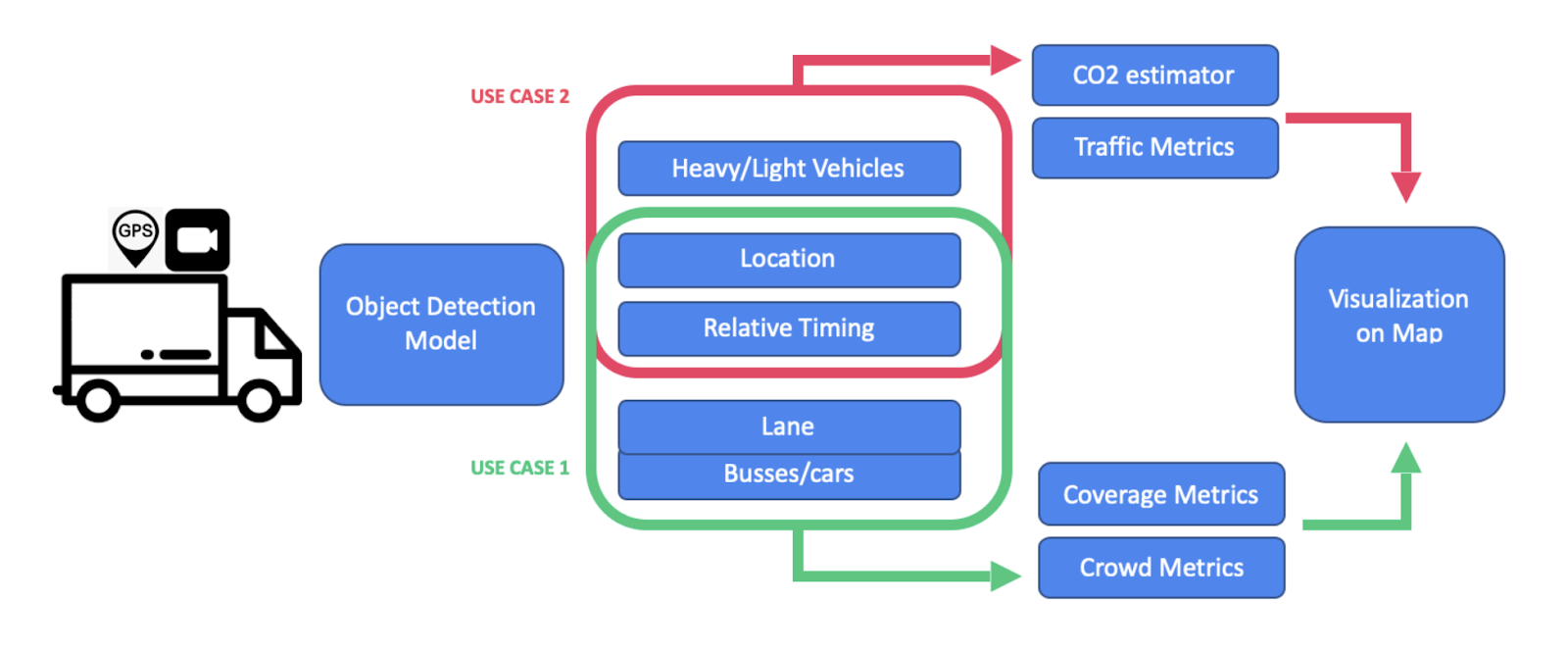 Our team believes that using observations from video recordings will contribute to better data about traffic congestion, availability of public transport (and shared mobility) in certain streets at certain times of the day.