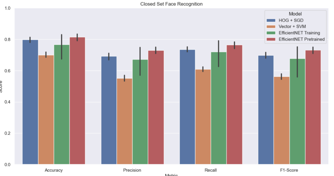 Utilizing different techniques, the face recognition team tested many different models, because we did not know which could perform the best. The criteria for choosing these models were: