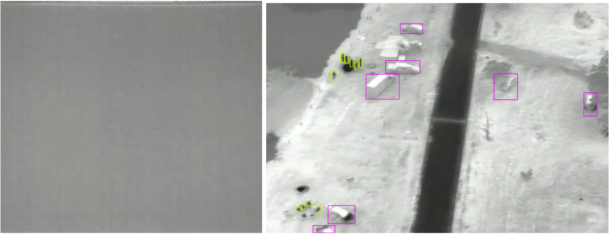 Dataset samples - a ‘grayed’ image on the left and an image with relevant information on the right