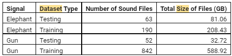 The dataset supplied by the Elephant Listening Project at K. Lisa Yang Center for Conservation Bioacoustics at Cornell University consists of sound recordings obtained by autonomous acoustic recording units installed deep in the Central African rainforest. It has labels of elephant rumble vocalizations and gunshots.